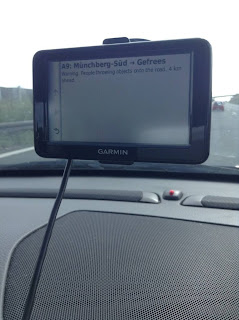 people throwing stuff on the road? there is a first time for everything, and this was the first time i have ever seen such an odd message on our gps....